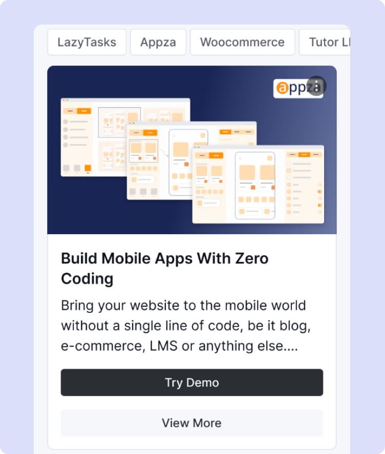 “Lazycoders has truly outdone themselves with Aapza—a no-code mobile app builder that’s pure genius! With Aapza, transforming your WordPress site into a sleek mobile app and publishing directly to app stores has never been easier. It’s a game-changer powered by the unmatched expertise of Lazycoders’ engineering team. Highly recommended!”