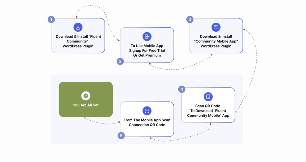 It’s quick! Install, scan QR code and sync Fluent Community with the mobile app.